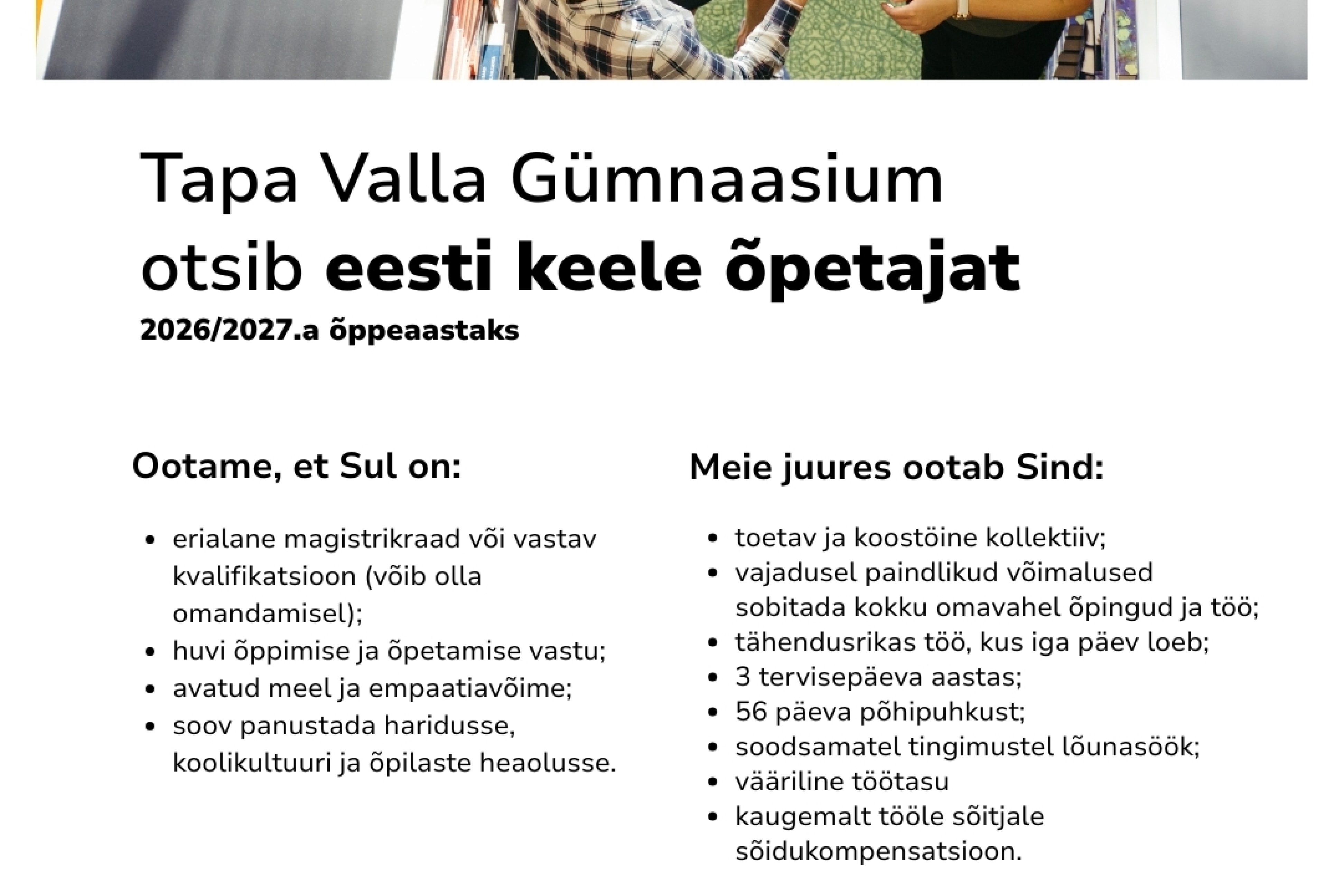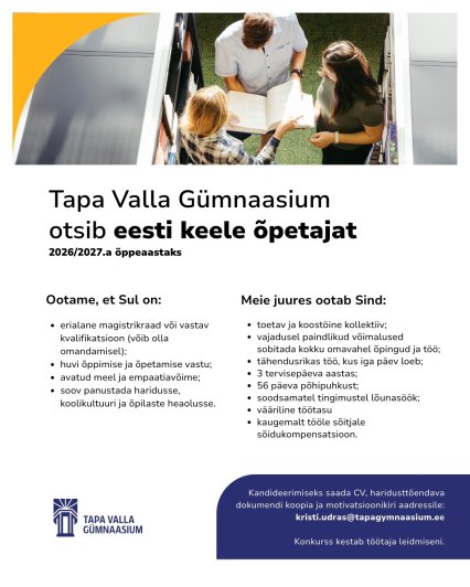 Tapa Valla Gümnaasium otsib eesti keele õpetajat