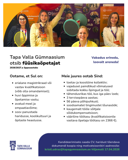 Tapa Valla Gümnaasium otsib füüsikaõpetajat