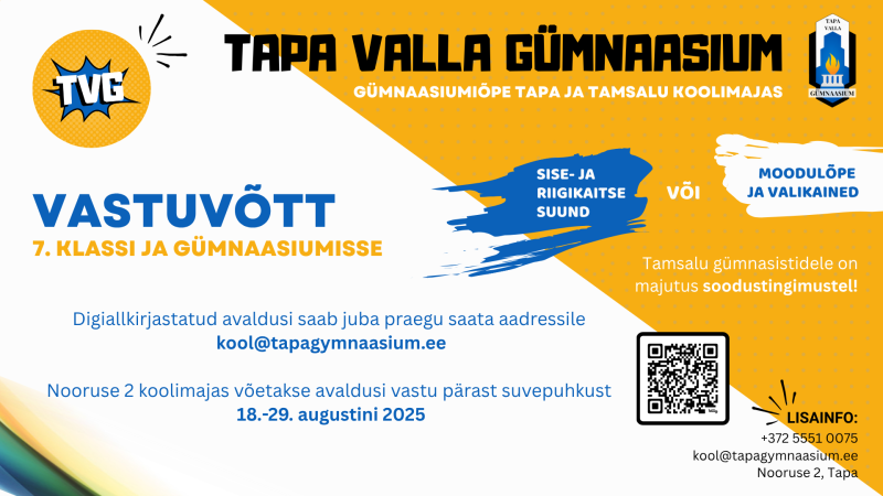 - Digiallkirjastatud avaldusi saab juba praegu saata aadressile kool@tapagymnaasium.ee.