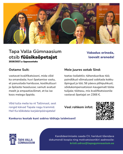 Tapa Valla Gümnaasium otsib füüsikaõpetajat
