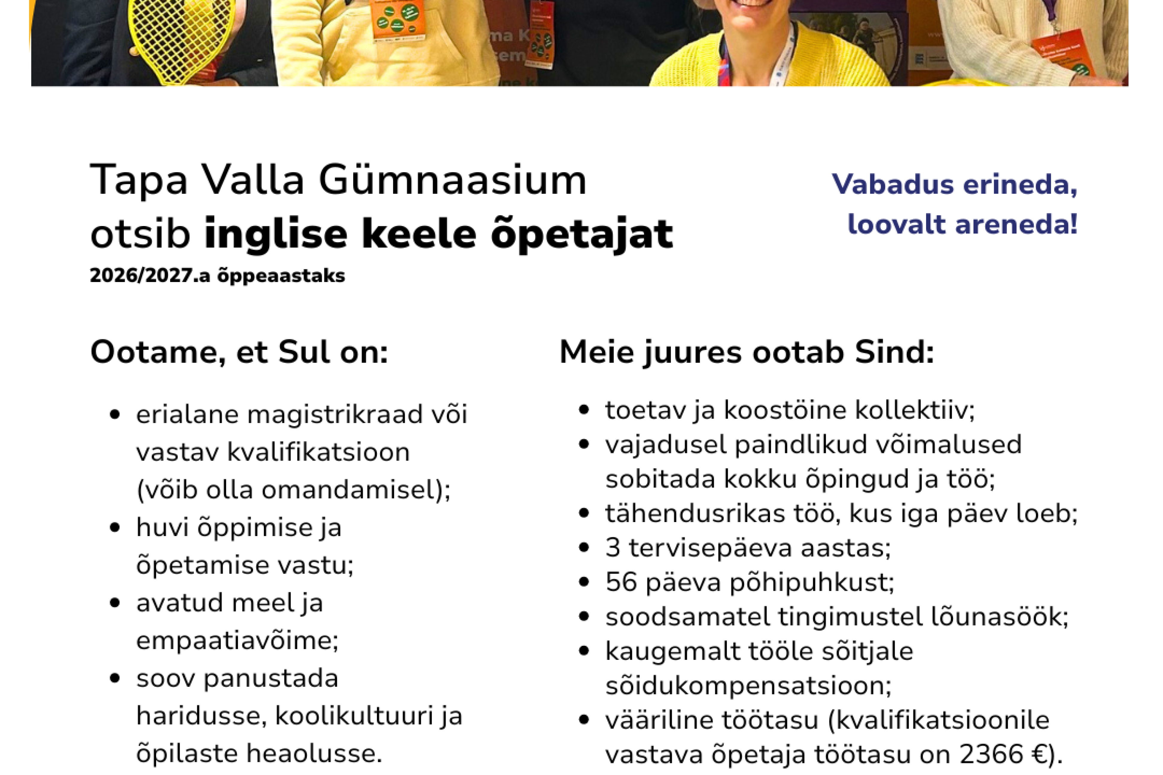 Tapa Valla Gümnaasium otsib inglise keele õpetajat